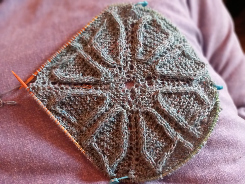 And so, despite having one project on the go already, and three in the sin bin to think about what they’ve done, I went ahead and cast on. A few hours gave me the pics above – another few brought me to row 26, and what a difference!