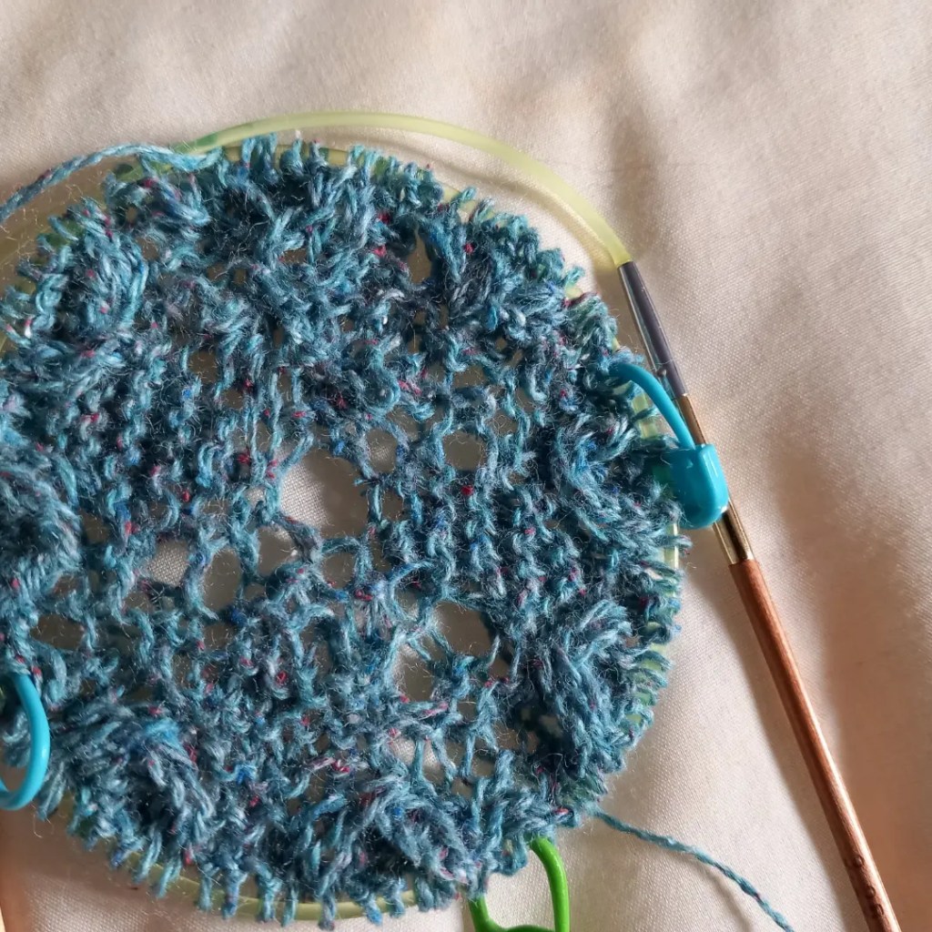 The pattern is Morvarch (Ravelry link) by Lucy Hague (Lucy’s website link), and here’s how I was getting on at row 13: