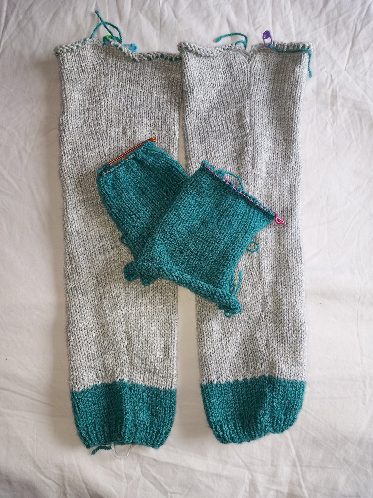 So I did a bit of maths, made a few tweaks, and went ahead and got started on the pocket linings (which also served as a handy gauge swatch so I could check my sums again). Happy with those, I leaped on to sleeve island and knit up both sleeves at once, before swimming safely back to shore.