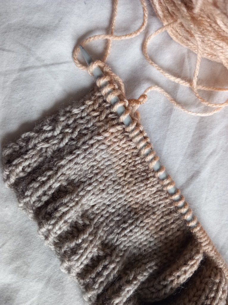 Anyway, I’ve been thinking these thoughts because of a current WIP. I got yarn for Christmas – I always have yarn on my wish list – and while I’d had plans for it when I first saw it… Those plans changed, as they so often do.