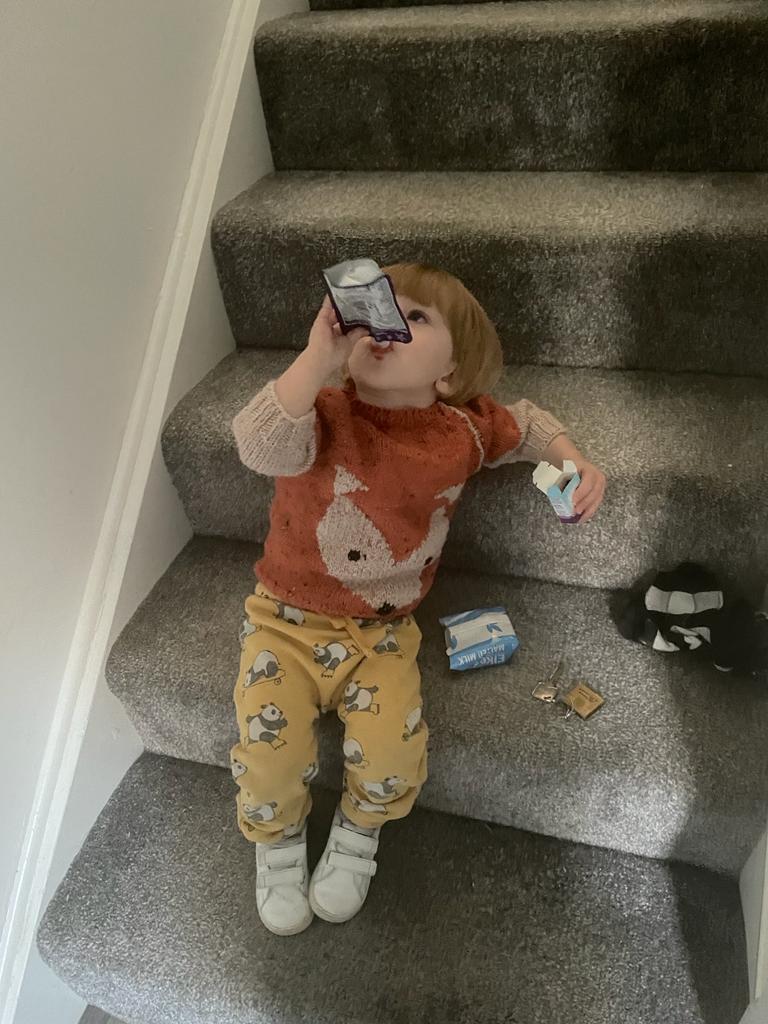 The sweater was still in use in November (with the birthday having been in the Spring), just with the sleeves now being three quarter length.