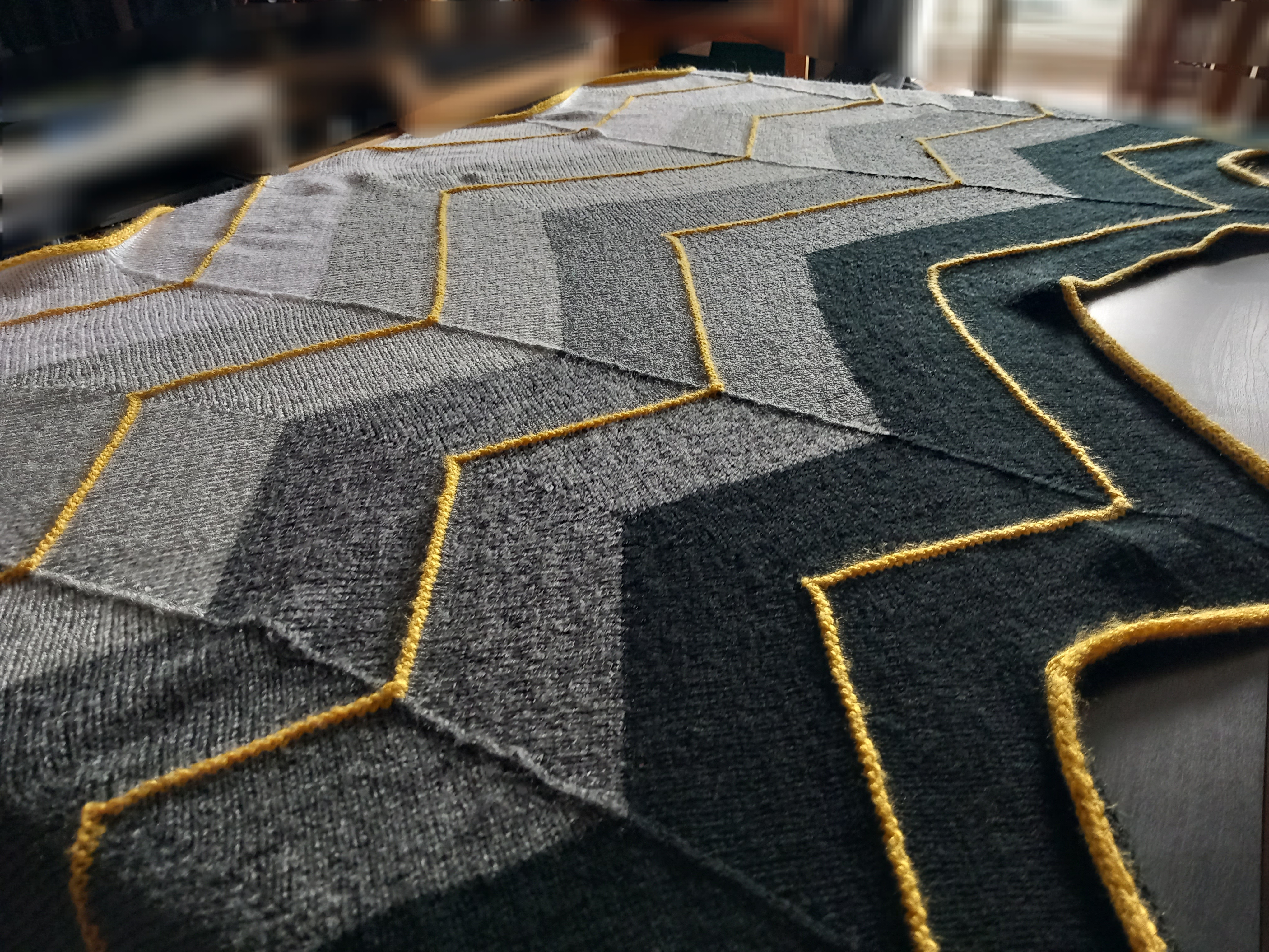 I saw this shawl on a Modern Daily Knitting post about applied i-cord. In that post, Kay talks us through her own method for the finishing of her Volt shawl, which is not the same as the pattern but gives just as nice a result. The zig zags of the Volt pattern appealed to me greatly, as did the size of the finished wrap. You know I love a blanket masquerading as a wearable item.