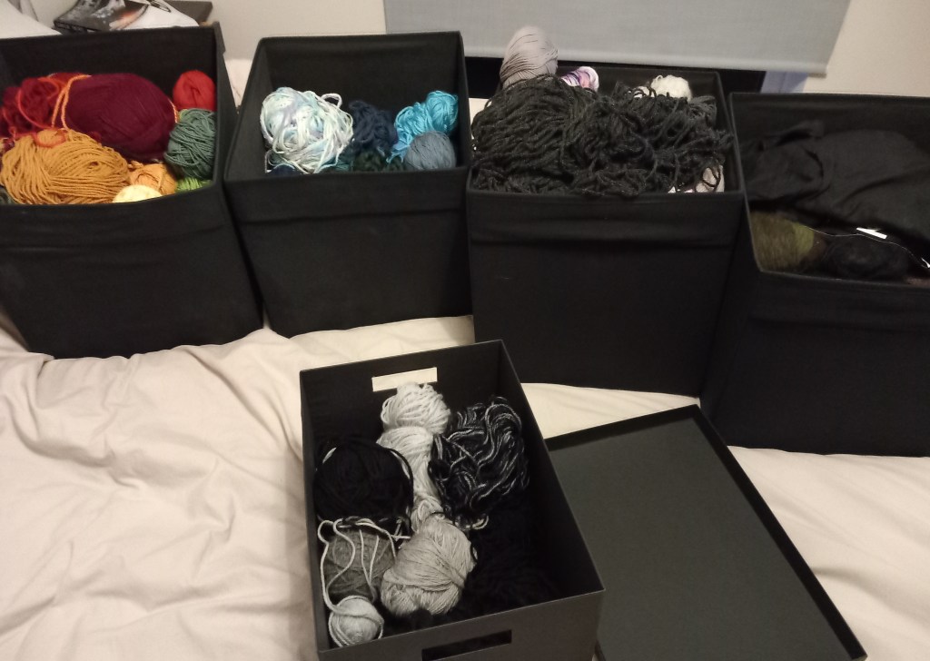 I took this photo on an evening where I had every intention of reviewing the stash, maybe pairing up some options, and winding up some of the more tangly bits. I did not achieve that. I achieved a photo, and winding about half of a particularly problematic skein, before packing it in and watching some old school Louis Theroux and eating chocoloate instead. Shrug emoji.