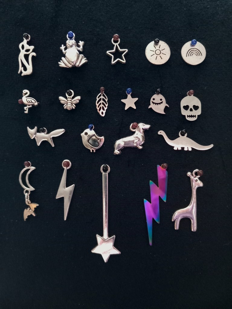I started with some star, rainbow and lightning charms. The fun thing about making my own stitch markers is that I can make as many as I need for the project I’m working on, and can also make some that are designed to show when a special thing is supposed to happen. For example, when I was working on my second Wingspan, there are points at which you work to the third, sixth or ninth stitch marker, then wrap and turn. I used wee lightning bolts to give a visual cue.