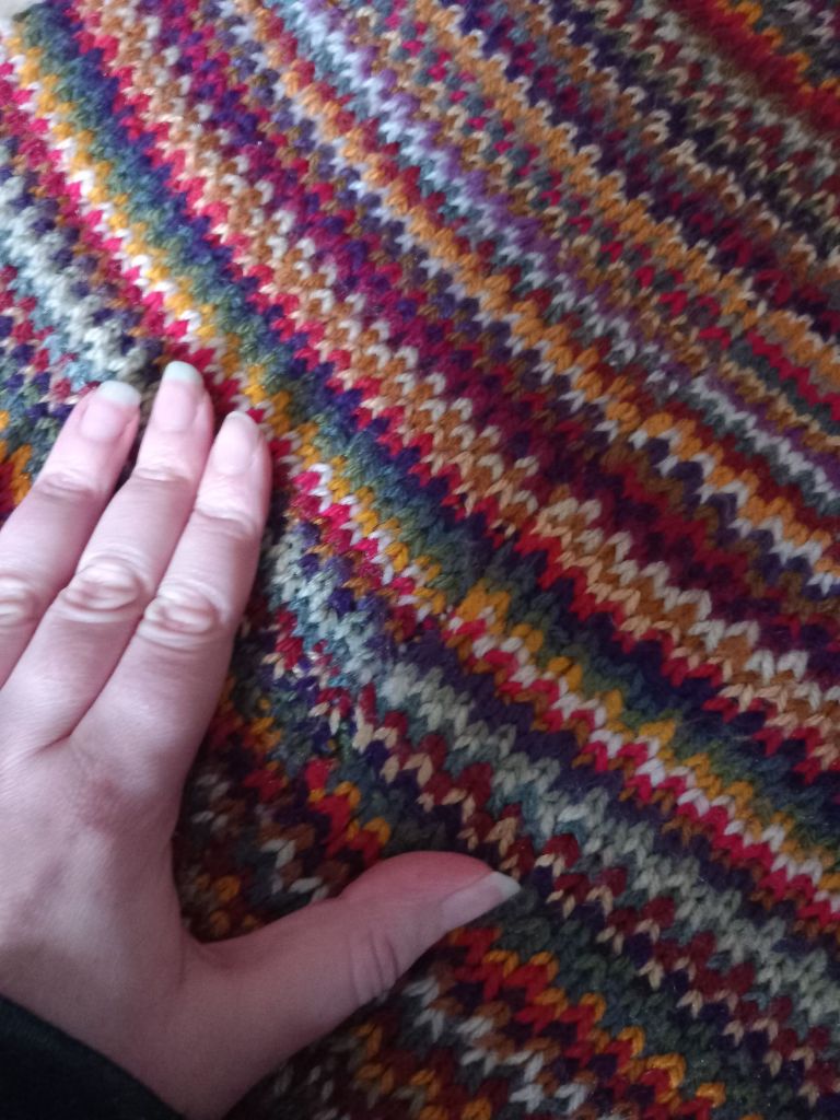 Heads up: this project develops its own gravity. I found several-many stash balls joining the project bag as I went along. When tidying up the project bag, I added 400g to stash… so just under 9.5kg to use, then! But I did use 450g of yarn in making it so it’s a net improvement, even if it’s not one I’ve measured.