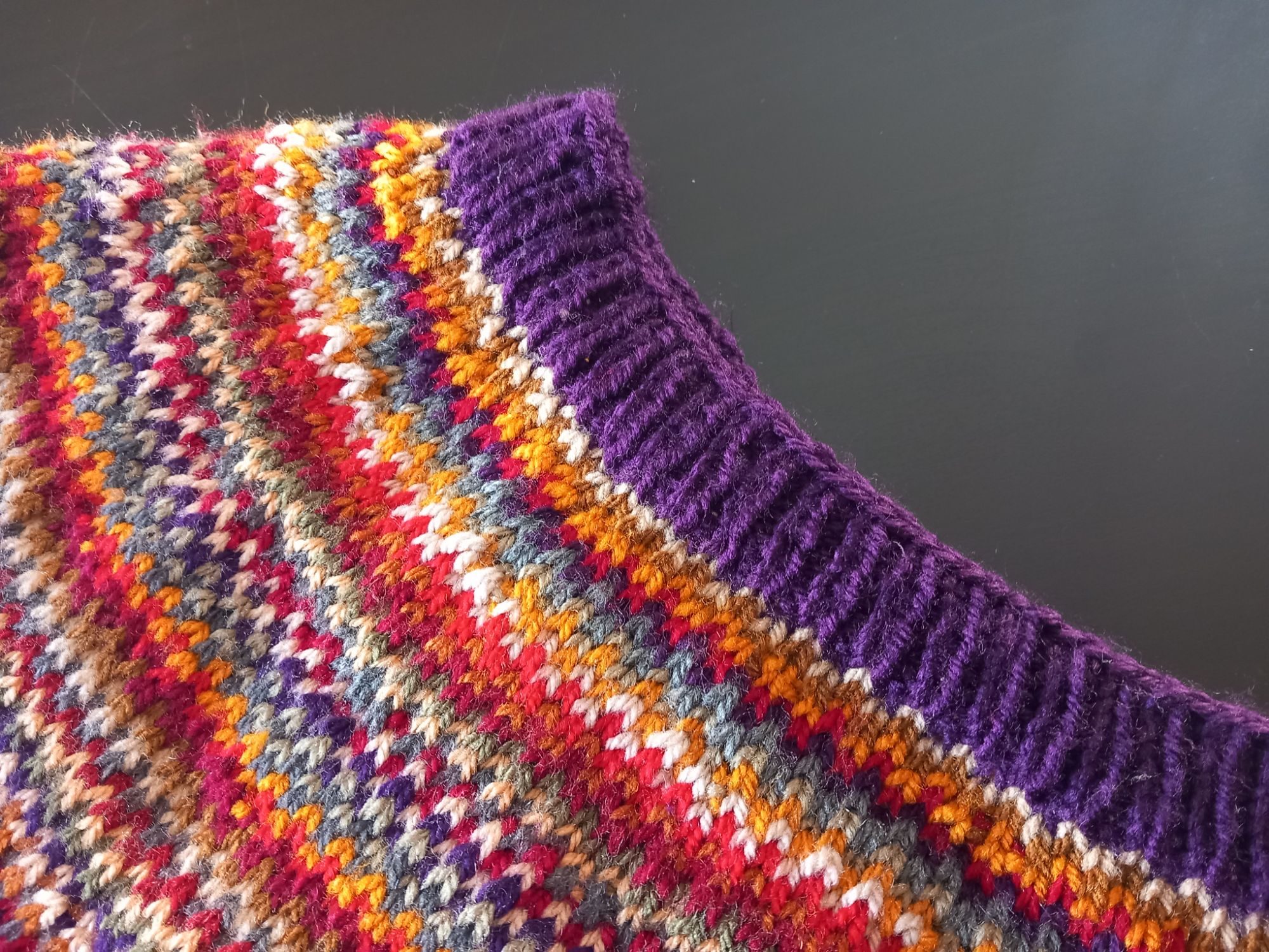 Then, about five rows in (of a total eight), I realised I’d done 2×2 rib instead of 1×1. I was absolutely not going back and finished it in 2×2, then cast off. Nobody will notice the difference between collar and hem, not even me.