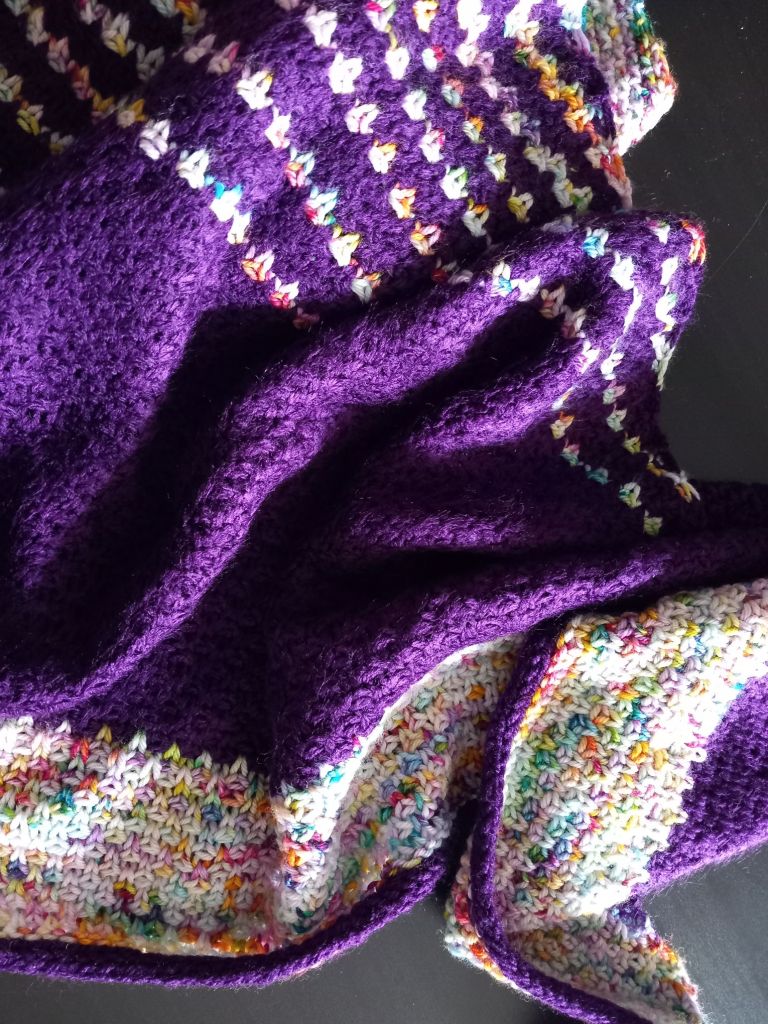 I love how the speckles show up in this pattern. It’s very different to anything I’d usually make, much more colourful. It’s good to switch things up, right? But I did remain true to my preferred pallet with my favourite purple, and it sets off the colours nicely.