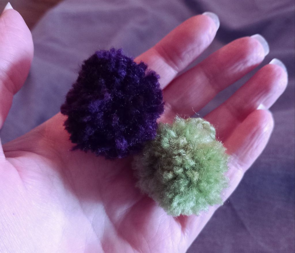 Turns out there’s a well recognised technique to make them with scraps of yarn and a fork. A fork! I have forks!