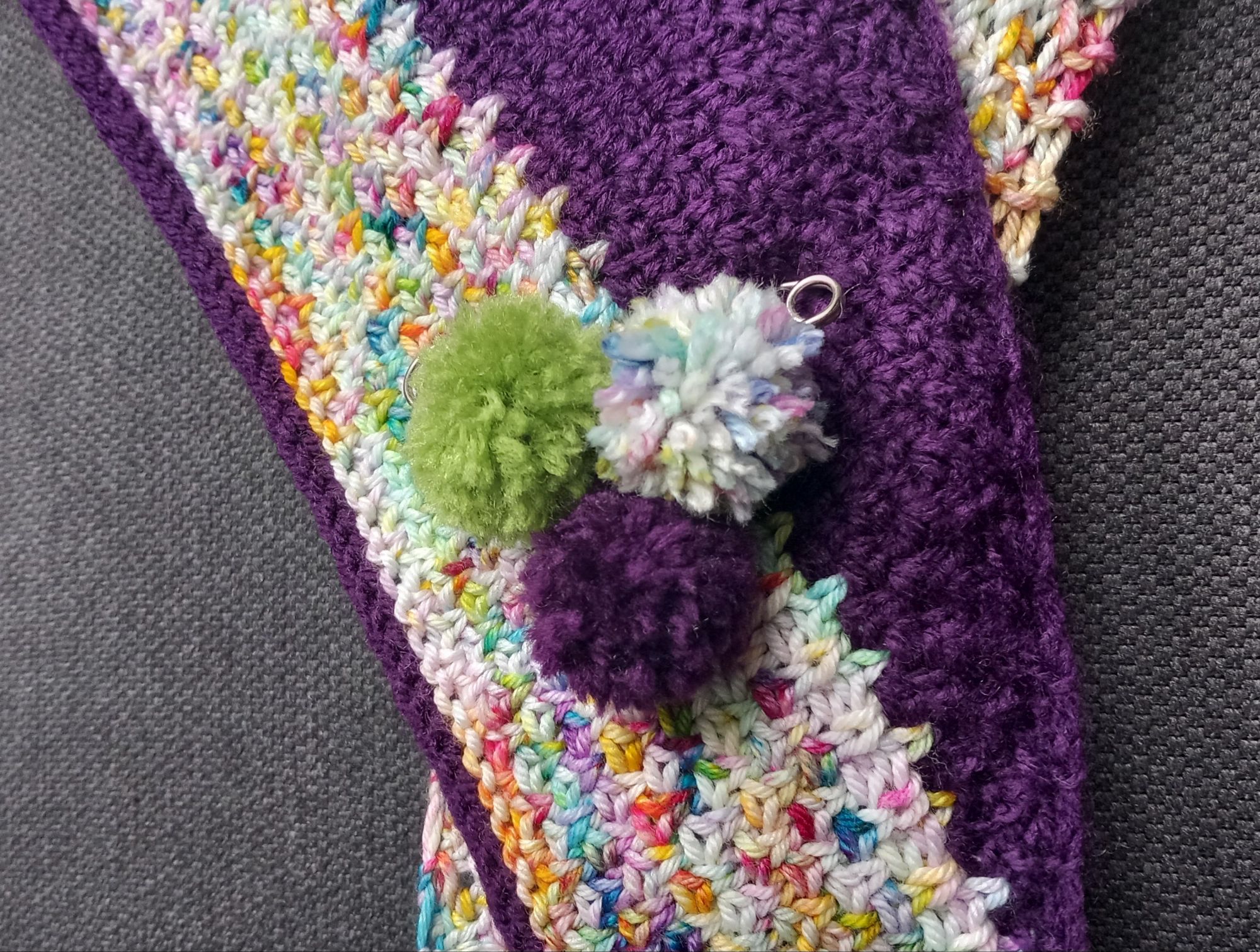 You may recognise the variegated and purple yarns from my Texture Shawl. There’s quite a bit of green in the variegated, and I had a lovely little ball of matching green in the scraps jar, so that all worked out nicely.