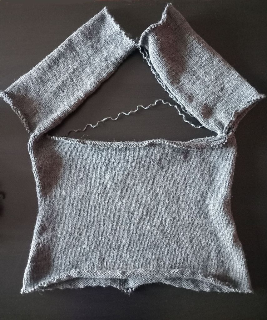 After taking apart my attempt at Harmonia’s Rings, I was left with a ball of wool and a ‘ghost jumper’. I don’t know why that’s how I thought of it. It had (short) sleeves and most of a body, but no yoke. Perhaps I thought of it as headless?