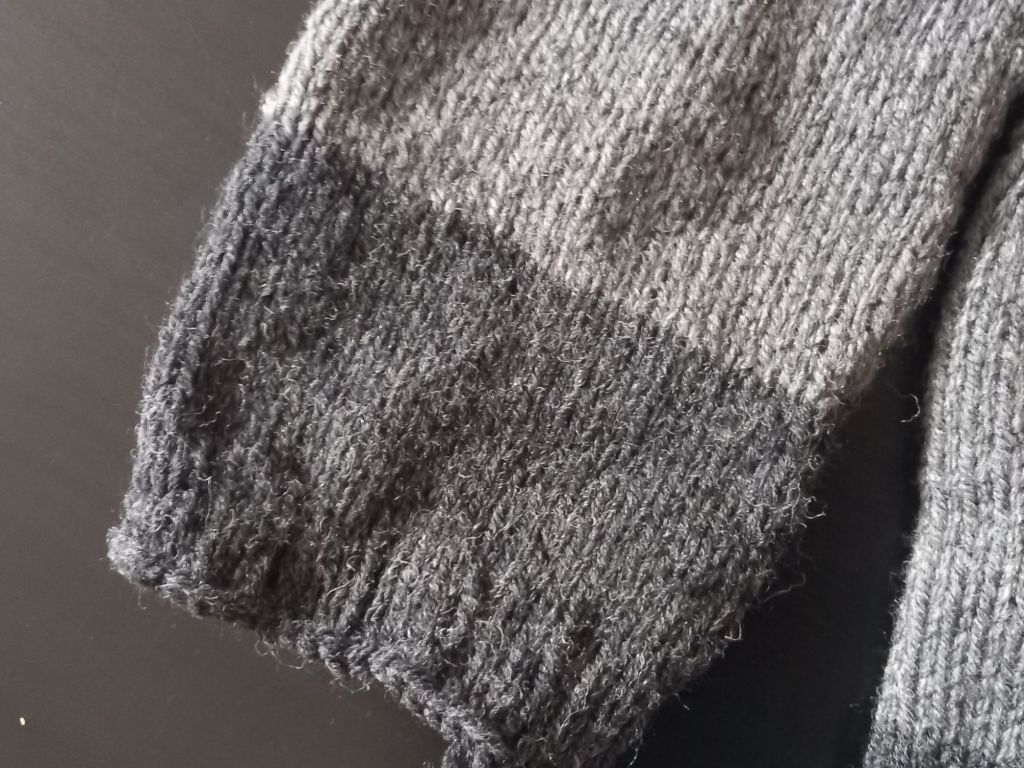 At any rate, I decided I’d finish it off and donate it to charity. I had live stitches to pick up at the hem and cuffs, and even though I technically didn’t have live stitches at the top (it having been made top down) there was a row there that unzipped pretty readily.