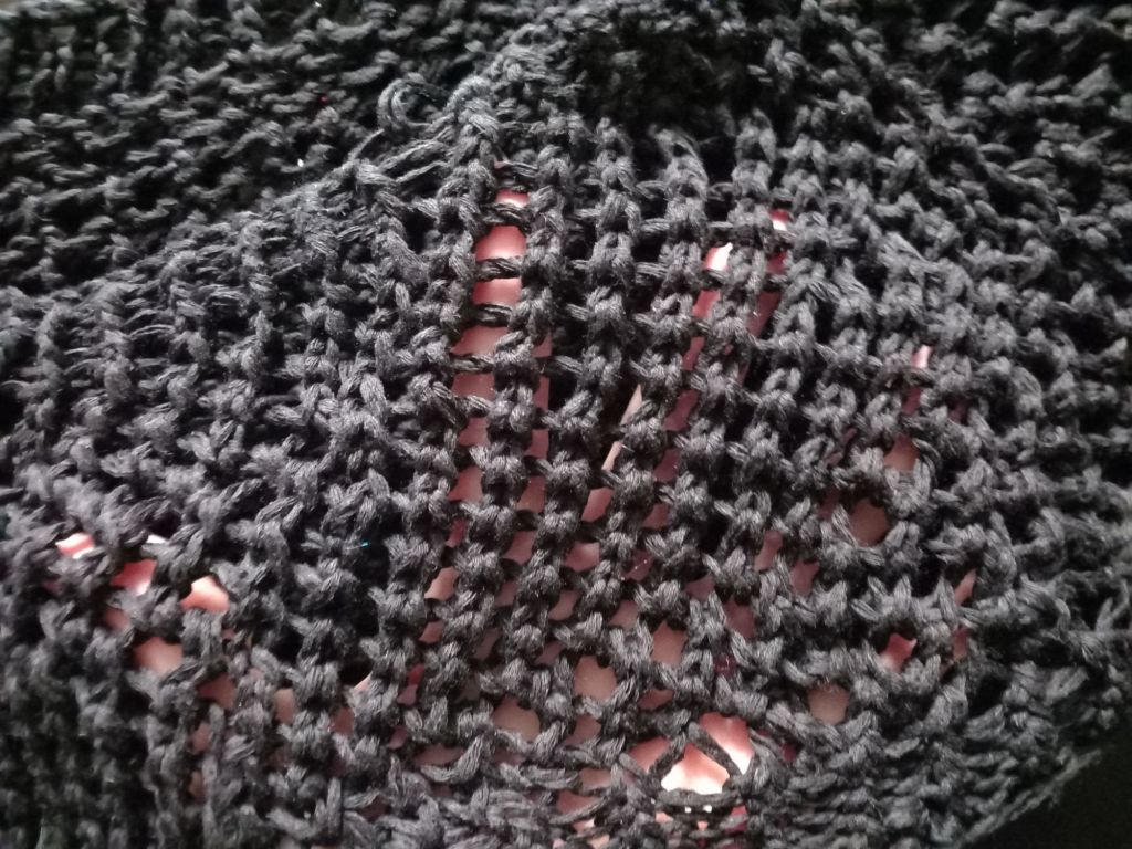 It’s challenging to work with, being easy to split, and holding double exacerbated that. I also didn’t read the pattern right and so the mesh isn’t perfectly as written – but it seems forgiving. I’m telling myself that it’s got a slightly punk vibe, so any imperfections are going to fit with that.