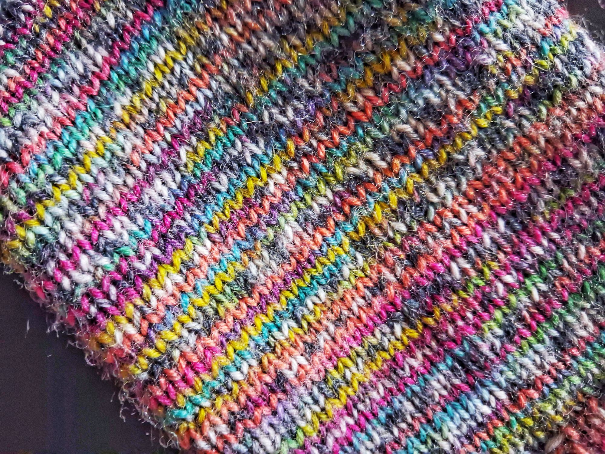 And then, while things were challenging at home, I did some retail therapy and bought myself sock yarn – Luca-S Woolen Walk in Kaleidoscope. I really liked the black and white check alongside the bright colours. The yarn isn’t soft, but I do think it will wear well. Writing this post has included sternly telling myself not to buy some more.